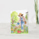 This note card features a watercolor portrait of a woman watering her garden.
