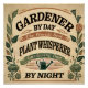 Celebrate your passion for gardening with this elegant, customizable glossy poster! Featuring the charming slogan “Gardener by Day, Plant Whisperer by Night,” this vintage-inspired design showcases bold serif typography for “Gardener” and graceful cursive script for “Plant Whisperer.” Surrounded by intricate hand-drawn gardening tools and leafy accents, this poster can be personalized with two custom text areas for a name or a special message, making it a perfect gift for plant enthusiasts or a decorative piece for your home or garden shed. Printed on high-quality, glossy paper for a vibrant and professional finish, it’s ideal for adding a touch of greenery to any space.