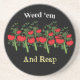 Tomatoes are a staple for most every gardener and none of us can wait for those juicy red fruits. Fun graphic design with a row of tomato plants surrounded by the play on words Weed 'em And Reap.