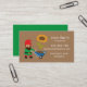 A modern, brightly coloured business card design suitable for a gardening business. This stylish card has an illustration of a cute garden gnome with customisable background. The text is fully customisable to include your own personal details. The background colour can also be changed.