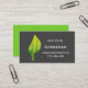 A modern, brightly coloured business card design suitable for a gardening business. This stylish card has an illustration of a cute greenleaf modern design against a stylish modern grey background. The text is fully customisable to include your own personal details. The background colour can also be changed.