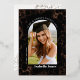 This elegant graduation announcement features an arch shaped photo on a black background with gardenia floral patterns on real rose gold foil. Personalise it for your needs. You can find matching products at my store.