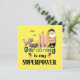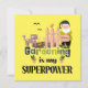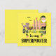 A cute gardening illustration showing a fence, a gnome, a cat and two lovely radishes, and text saying: Gardening is my superpower.