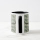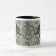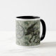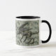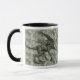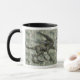 Two stone sculptered, moss covered gargoyles, guarding a pentacle that looks as if its carved in stone, on a mottled greeny grey background - the perfect mug for AD&D gamers or fantasy art geeks!