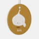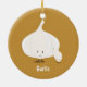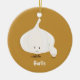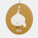 Ornament with a smiling garlic bulb and garlic clove. The text can be customised.