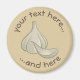 Garlic bulb with clove icons with woodcut shading. Two custom text fields on circle.