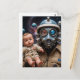 AI generated scifi fantasy art of an alien in a gas mask with a human baby in space