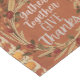 Create a warm and festive table setting with this Thanksgiving table runner. Designed with rustic charm, it features a deep autumn base colour accented by borders of fall leaves, pumpkins, and acorns. At the centre, a harvest wreath of wheat, pumpkins, and cranberries frames the phrase “Gather Together, Give Thanks.” Perfect for family dinners, Friendsgiving celebrations, or holiday parties, this table runner brings seasonal elegance and a welcoming touch to your feast. Customisable to fit your table and celebration style.