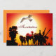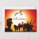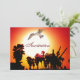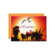 Seagull flying over the people & palm trees, art in a yellow orange colour. you can customise this invitation.