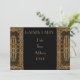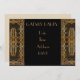 A party invitation for a Gatsby themed 1920s prohibition fancy dress costume party. This fully customisable invitation features a black background with Art Deco gold border in a 1920s geometric design.