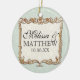 COLOR PALETTE: mint green, grey, white, and gold metallic look (faux) DESIGN COLLECTION: This is a matching Wedding Ornament to match the wedding invitation set of the same name. This set was inspired by the glamourous era of old Hollywood, taking its cues from Premier Posters and Glam gala events. Borrowing the stylish vintage yet modern typography font layouts that are trendy in today's wedding styles and adding a hand created, decorative lace inset with a raised look, golden curving swirl border, and swirls and a swirl decorative ornament. This invitation set can be done in any colour, just message us!