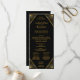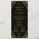 Wedding folded program and timeline with icons black and gold art deco design pattern