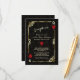 Unique Casino Royale and Great Gatsby themed card design. It features vintage art deco style, a Roaring 1920's old Hollywood broken frame with faux gold foil Fleur-de-lis, red hearts, Q and K on two corners (simulating playing cards), on gold black Art Deco pattern background. Use Personalise tool to add your information. For more, visit please, my Gatsby Casino Collection.