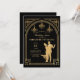 A roaring good fun awaits with this elegant birthday soiree party invitation with a roaring 20s theme, featuring a deco arch frame and the silhouette of an elegant woman dancing with her partner. A perfect Gatsby party invitation template for a Great Gatsby theme. Whether for a 40th, 50th, 60th, 70th or 80th birthday party, or for a roaring twenties, this vintage art deco nouveau frame with a gold foil overlay effect (this is a digital effect, not real foil!) will shine bright. A roaring twenties speakeasy theme party for a doll of any age. Also suitable for a business or corporate gala event.