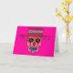 Sugar skull man in hat greeting card. Background colour can be customised.