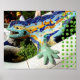 Gaudi Lizard Hand & Green Flowers poster