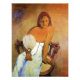 Paul Gauguin Girl With A Fan photo print. Oil painting on canvas from 1902. Gauguin is famous for his colourful paintings of Tahiti. Girl with a fan is a subtle and engaging work featuring a young woman in a white sarong holding a white feather fan while sitting in an antique chair. The background of the painting is illuminated with soft tan and clay light. A great gift for fans of Gauguin, Tahiti, tropical art, and French painting.