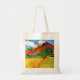 Paul Gauguin Mountains in Tahiti tote bag. Oil painting on landscape from 1893. One of Gauguin’s most famous paintings, Mountains in Tahiti, or Tahitian Mountains, exhibits Gauguin’s vibrant use of colour and love for tropical landscape. This painting features a man carrying produce down a road towards red mountains and lush palm trees flaring with green and orange. A dog stands in the distance in a field with bright yellow grass near soft green bushes. A great gift for fans of Paul Gauguin, Cloisonnism, Tahiti, and tropical painting.
