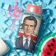 Gavin Newsom for President in 2028. Red, white and blue patriotic political can cooler with a cartoon caricature of Gavin.