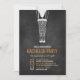 This is a gay bachelor party invitation. The invitation features a pair of long men's legs in stockings and high heels. The bachelor invite is sexy and elegant