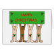 Four cartoon men, wearing only holly on their 'private parts' holding up a large sign that says 'Happy Christmas'.