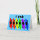 Gay Lesbian Kayaking Greeting card, rainbow kayaks in a row, "i yak".