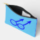 This awesome toiletry bag is designed for gay men. It features two blue male symbols standing side by side. The background is blue and there is customisable blue text inside each of the symbols to put names.