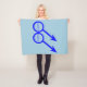 This awesome fleece blanket is designed for gay men. It features two blue male symbols standing side by side. The background is blue and there is customisable blue text inside each of the symbols to put names.
