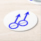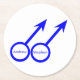 This awesome paper coaster is designed for gay men. It features two blue male symbols standing side by side. The background is white and there is customisable blue text inside each of the symbols to put names.