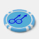 This awesome set of poker chips is designed for gay men. It features two blue male symbols standing side by side. The background is blue and there is customisable blue text inside each of the symbols to put names.