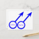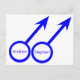 This lovely postcard is designed for gay men. It features two blue male symbols standing side by side. The background is white and there is customisable blue text inside each of the symbols to put names.