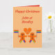This awesome Christmas card for a Gay couple features a digital art image of a cute gingerbread Gay Male couple. The gingerbread men have rainbow coloured fringes on their legs that matches the colours of the pride flag. They have green and red buttons and are each waving a rainbow coloured flag. Both have a big smile. There is a gingerbread heart above the couple showing their love for each other.