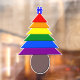 This awesome shaped window cling features a rainbow Christmas Tree with 2 small blue male symbols sitting on top of the tree. Each layer of the tree is a different colour of the rainbow. The tree sits in a brown pot.