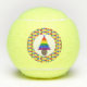 This awesome tennis ball features a rainbow Christmas Tree with 2 small blue male symbols sitting on top of the tree. Each layer of the tree is a different colour of the rainbow. The tree sits in a brown pot and is surrounded by presents. Each present is also a colour of the rainbow, with a different rainbow coloured ribbon and bow. A lovely design for gay couples this Christmas.