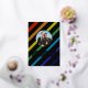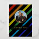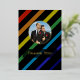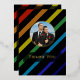 Express heartfelt gratitude with this personalized gay men wedding photo thank you card — bold diagonal Progress Pride stripes on sophisticated black with gold foil typography frame your wedding photo in an elegant medallion on the front. The back features a fully customizable message and the grooms' first names in flowing gold script, all against the signature diagonal rainbow stripes on black. Modern, masculine, and deeply personal.