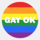 GAY OK Big Text Logo LGBT Gay Pride Rainbow Flag Classic Round Sticker