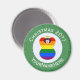 Round magnet for Christmas decor featuring a black haired angel dressed in the Gay Pride Rainbow Flag. The angel is found inside a white fractal circle of squiggly squares with a background of green squiggly squares. Add your own text, if you wish. Personalise with a name and customise with the year. Fun stocking stuffer. Show your Gay Pride during the holiday season. Lovely stocking stuffer, too.
