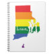 This design features the state of Rhode Island made of the colourful colours of the rainbow.