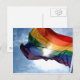 A fluttering rainbow gay pride flag fluttering against bright blue skies, signalling pride and hope in the LGBT movement.