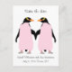 Two pink penguins holding hands. A save the date postcard for a gay wedding or civil union. I also have this card with two blue penguins and another with one of each colour. This postcard is customisable for you to add your save the date details. The penguin is based on HOIHO, the New Zealand Yellow Eyed Penguin.