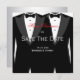 Black, white and red gay wedding Save the Date Christmas Cards with customisable text and silver background