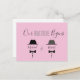 Simple, minimalist fun pink and grey gay wedding save the date invitation postcard, with black bow ties drawing monograms.