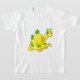 100% cotton so perfect for summer, It is a nicely designed t-shirt, the fabric is soft and the seams finished well, the body of the t shirt has no side seams. I bought a medium size for my two grandsons, aged 9 and 8 it will be slightly big on them but I would rather that than too small