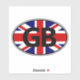 GB country code British Union Jack flag oval vinyl Sticker for car or camper. Great Britain abbreviation. Create your own personalised stickers for vehicle, luggage, bike, water bottles, laptop and other products. Unique contour-cut stickers. Available in small, medium and large sizes. Add your own text. Great for international and national travel, road trips, vacations, sports events and more. Classic European style white oval shape sticker sign. English pride UK flag of United Kingdom, England.