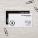 A clear stylish and attractive business card template with a simple but attention grabbing art deco style flower or star symbol. Main company details on the front, with name and personal contact on the back, on a grey background with a white version of the symbol.