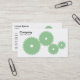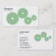 A business card template with an attractive motif made up of a series of cogged gear wheels creating a clean modern design suitable for many types of business. Company name and business on the front of the card. Name, address, telephony, email and web address on the reverse with a smaller version of the main motif.