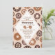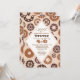 A handsome, man's birthday invitation, in shades of brown and sand, featuring a background of gears overlaid with a diamond-shaped panel for your party's information. (FP)