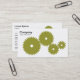 A business card template with an attractive motif made up of a series of cogged gear wheels creating a clean modern design suitable for many types of business. Company name and business on the front of the card. Name, address, telephony, email and web address on the reverse with a smaller version of the main motif.