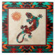 Brighten Your Home with this Unique "One of a Kind" Gecko and Sun Ceramic Tile! It Features a Southwest Gecko Lizard and Sun on a Sandstone Background.....Surrounded by a Turquoise, Orange & Black Border!