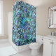 This colourful shower curtain has stylised binary code design in shades of blue and turquoise and a touch of purple. A fun design for the geek programmer that love coding. Also available is a matching shower mat.